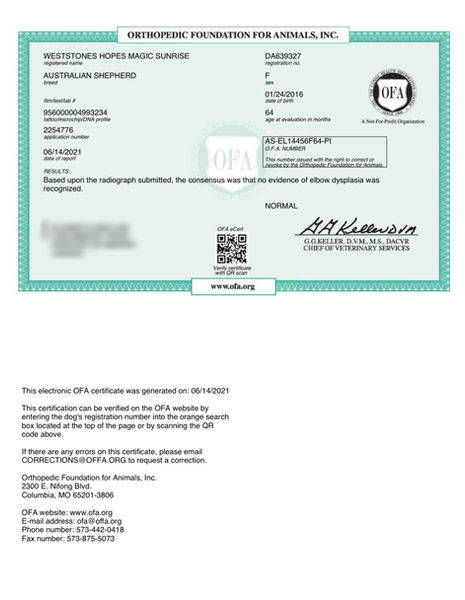 Paw Print Genetics- Australian Shepherd Genetic Panel: All Normal/Normal (clear) view her genetic health certificate below